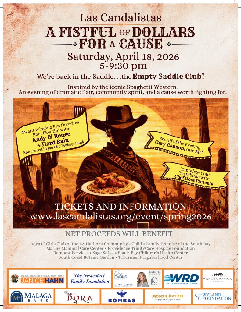 Join us for Las Candalistas’ Spring Fundraiser, A Fistful of Dollars for a Cause on Saturday April 18, at Empty Saddle Club. All proceeds support our charities that help the children and the environment in the South Bay.