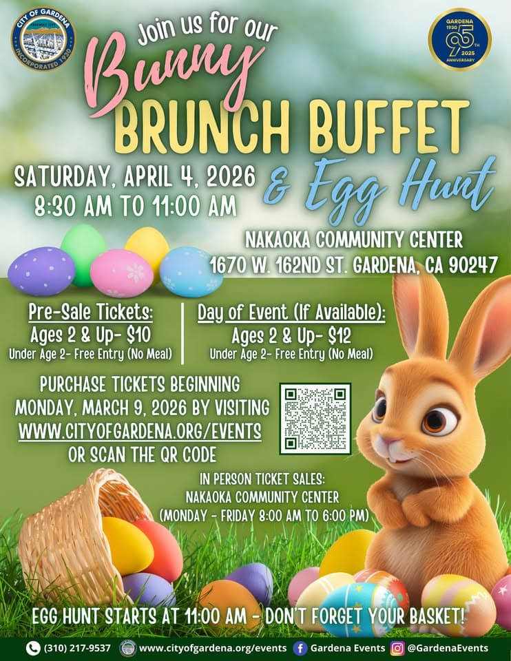 Mark your calendars because tickets will be available starting Monday, March 9, 2026, at www.cityofgardena.org/events. Don’t miss out on this fantastic family event—bring your friends and enjoy a day full of fun! 🌷✨