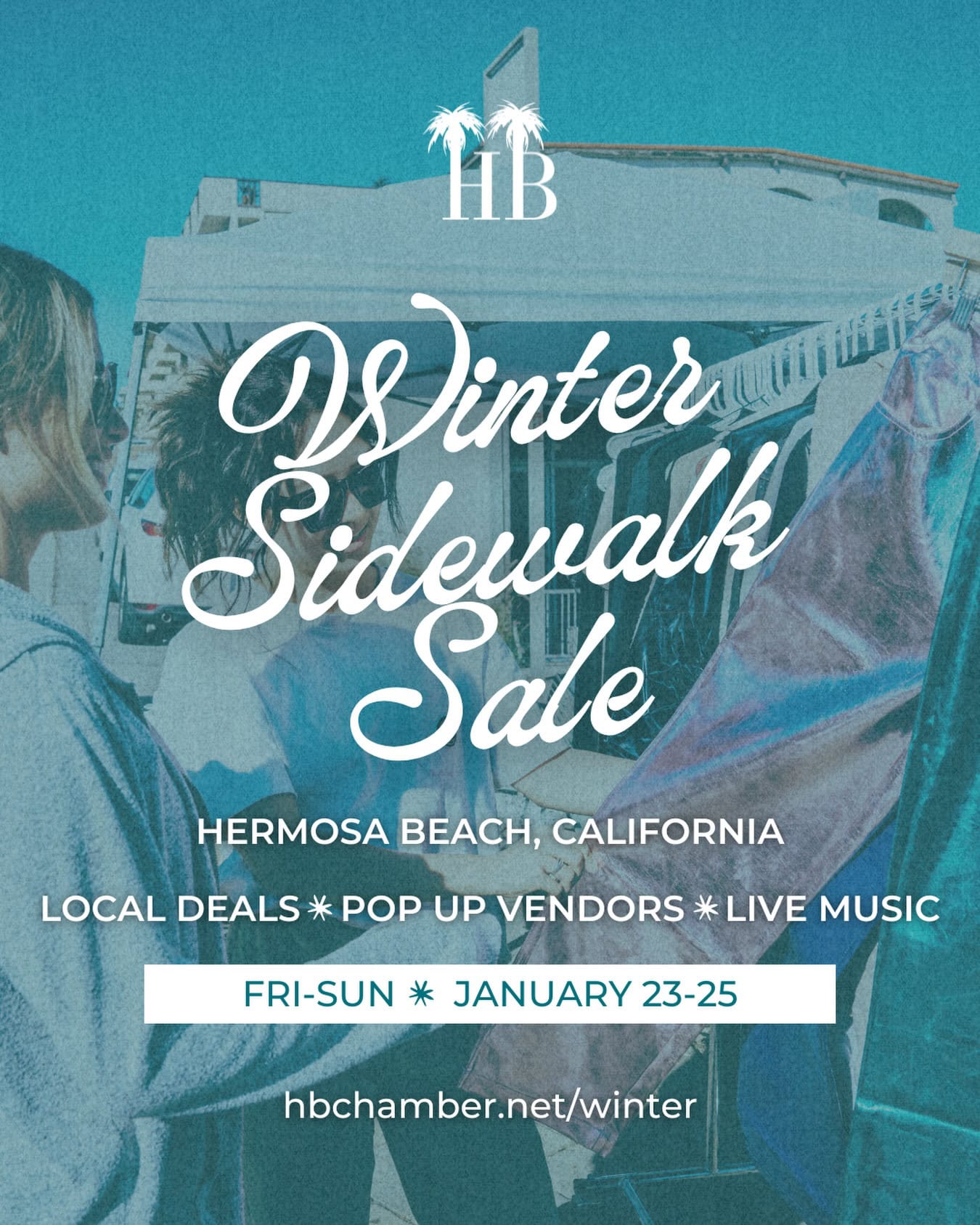 Shop and stroll January 23-25, 2026 at the Hermosa Beach Winter Sidewalk Sale which features 30+ small shops, local eateries, live music at Java Man, and more!