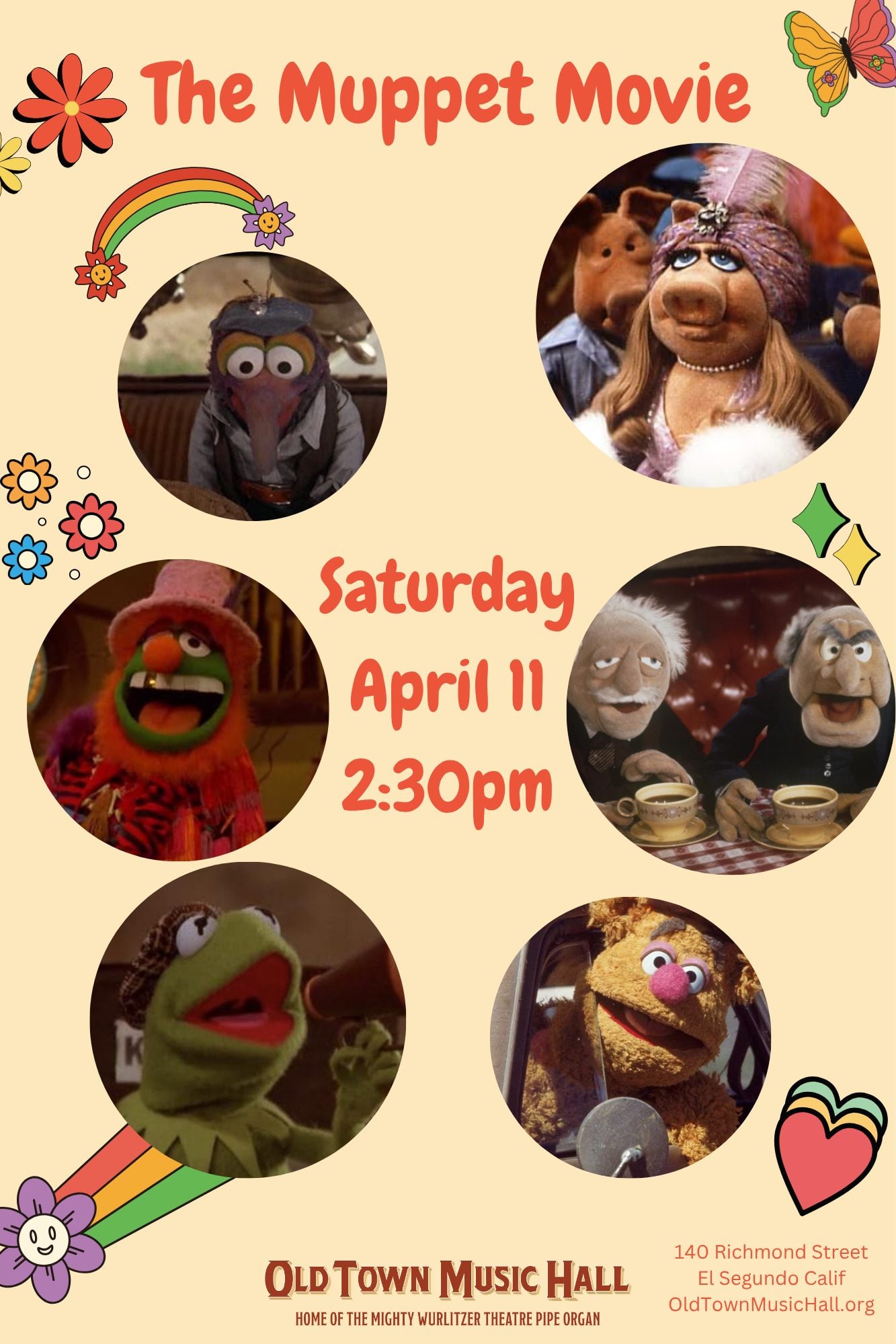 1979 • Before they were showbiz legends, the Muppets were just dreamers with a banjo and a plan. This joyous road-trip comedy tells the origin story of how Kermit the Frog met his lovable band of misfit friends—and chased a Hollywood dream that was “rainbow connection” material. With hilarious cameos (Steve Martin! Mel Brooks! Orson Welles!), unforgettable songs, and more heart than a Swedish Chef smorgasbord, this classic is perfect for kids and grown-ups alike. • Show begins with music on the Mighty Wurlitzer and an old fashioned sing-along.